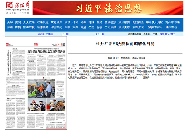 《法治日报》:牡丹江阳明法院执前调解化纠纷