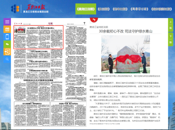 《黑龙江日报》:黑龙江省林区法院 30余载初心不改 司法守护绿水青山