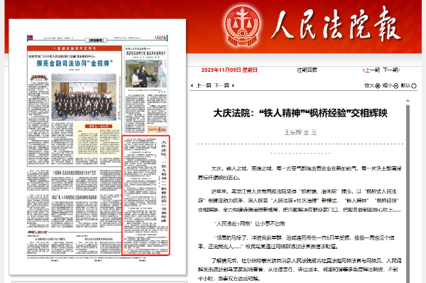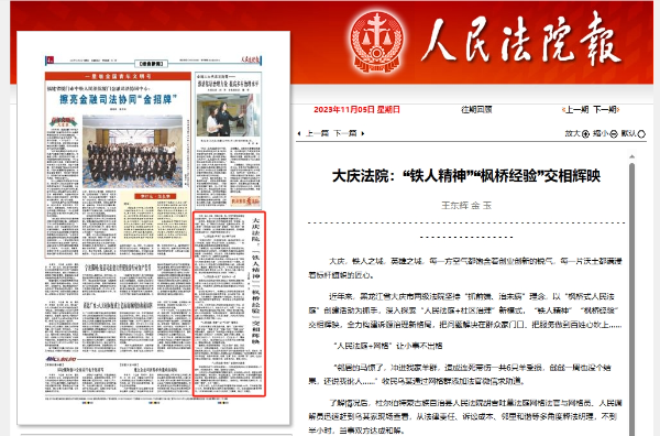 《人民法院报》:大庆法院 “铁人精神”“枫桥经验”交相辉映