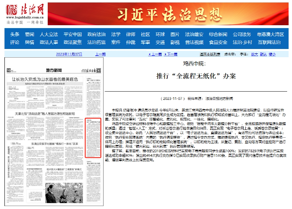 《法治日报》:鸡西中院 推行“全流程无纸化”办案