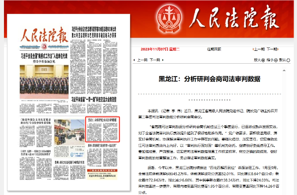 《人民法院报》头版报道:黑龙江 分析研判会商司法审判数据