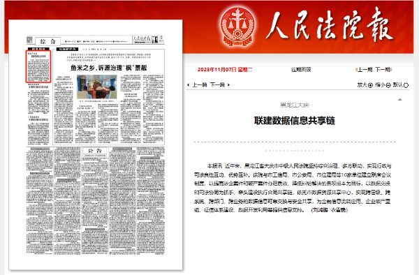 《人民法院报》报道大庆中院:联建数据信息共享链