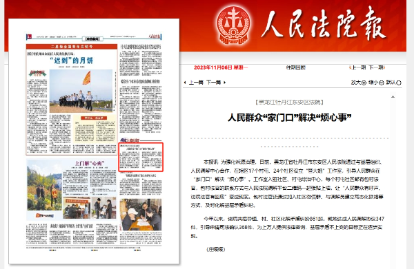 《人民法院报》报道牡丹江东安区法院:人民群众“家门口”解决“烦心事”
