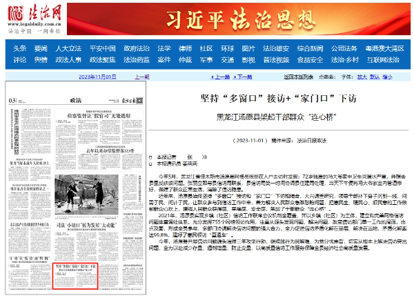 《法治日报》:黑龙江汤原县架起干部群众“连心桥”