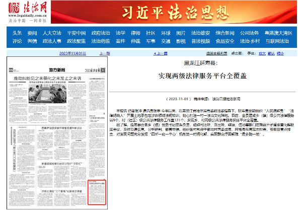 《法治日报》:黑龙江延寿县 实现两级法律服务平台全覆盖