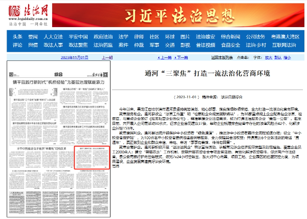 《法治日报》:通河“三聚焦”打造一流法治化营商环境