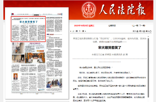 《人民法院报》报道鸡东县法院:宋大娘哭着笑了