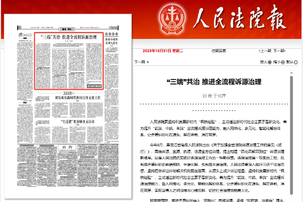 《人民法院报》报道大庆法院署名文章:“三端”共治 推进全流程诉源治理