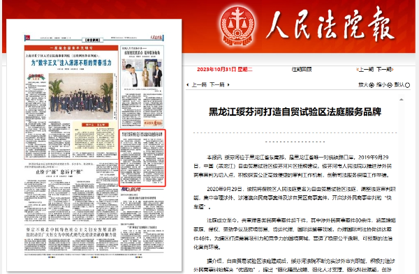 《人民法院报》报道绥芬河法院:黑龙江绥芬河打造自贸试验区法庭服务品牌