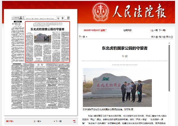 《人民法院报》报道东宁市法院:东北虎豹国家公园的守望者