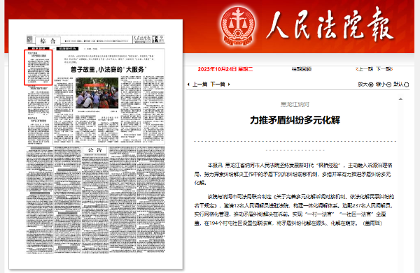 《人民法院报》报道讷河市法院:力推矛盾纠纷多元化解