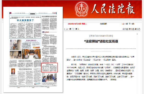 《人民法院报》报道哈尔滨市道外区法院:“法官驿站”进驻社区街道