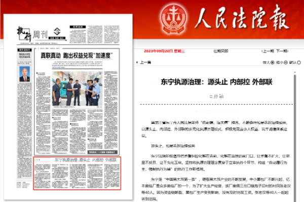 《人民法院报》:东宁执源治理 源头止 内部控 外部联