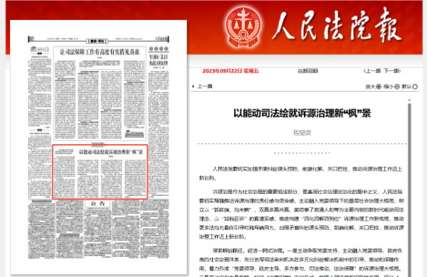《人民法院报》刊登程显波署名文章:以能动司法绘就诉源治理新“枫”景