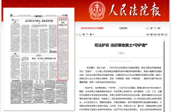 《人民法院报》刊发卜洪元署名文章:司法护农 当好寒地黑土“守护者”