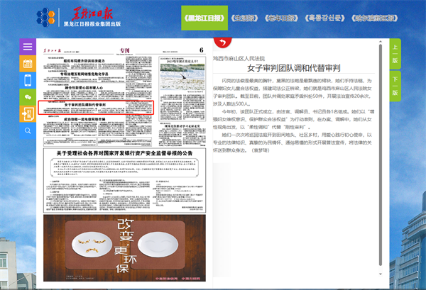 《黑龙江日报》:鸡西市麻山区人民法院女子审判团队调和代替审判