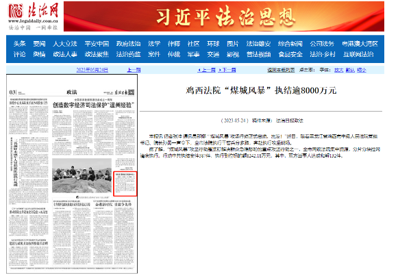 《法治日报》报道:鸡西法院“煤城风暴”执结逾8000万元