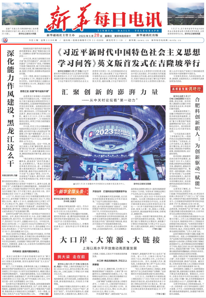 《新华每日电讯》头版报道:深化能力作风建设,黑龙江这么干