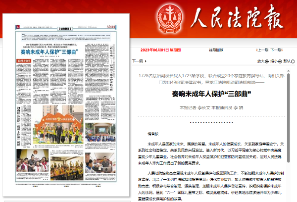 编者按未成年人是国家的未来、民族的希望。未成年人的健康成长,关系到家庭幸福安宁,关系到社会和谐稳定,关系到民族兴旺发达。进入新时代,以习近平同志为核心的党中央高度重视少年儿童事业,社会各界对未成年人权益保护和犯罪预防问题倍加关切,这对人民法院未成年人审判工作提出了新的更高要求。人民法院始终高度重视未成年人权益保护和犯罪预防工作,不断加强未成年人保护的制度建设,出台了一系列司法解释和指导意见;强化专业审判,加大对未成年被害人的帮扶救助力度;积极参与综合治理、源头治理,加强未成年人保护普法宣传,织细织密保护未成年人的法网。值此“六一”国际儿童节之际,编发此组稿件,讲述各地法院多措并举..