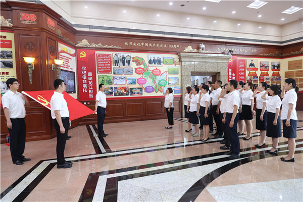 6月29日下午,黑龙江机关事务管理局财务审计处处长丁丽杰一行26名党员代表走进省法院开展主题党日活动,追忆入党初心、重温入党誓词、坚定理想信念,增强责任感和使命感。党员们纷纷表示,仿佛回到了当初加入党组织的那一刻,无论是当年入党宣誓,还是现在重温誓词,都感到热血沸腾,他们将不断进取,为共产主义奋斗终身。 重温入党誓词 张明 摄 参观领袖故事文化长廊 张明 摄 大家参观了省法院的领袖故事文化长廊、科技法庭、院史馆、图书馆等办公办案场所。在参观过程中,大家认真聆听讲解,不时驻足观看,交流心得体会。“2018年我来参加过‘公众开放日’活动,时隔..