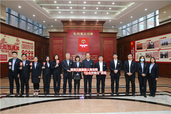 “2020年12月22日,我带着激动的心情参观了黑龙江高院,心有感触。高院庄严肃穆且温暖人心。看到高院与时俱进、与民亲近,想以后有机会带着家人再来一次。感谢高院‘公众开放日’活动,让我们真切体验到了司法的公开、公正。 ”阳光财险侯云迪参加黑龙江高院第250次“公众开放日”活动后,有感而发。 在党建大厅合影留念 杨博文 摄 参观领袖故事文化长廊 杨博文 摄 今天上午9时,阳光财险哈尔滨中心支公司渠道部的职工们早早地就来到了黑龙江高院,他们要参加第250次“公众开放日”活动。 参观法官监督墙 杨博文 摄 参观图书..