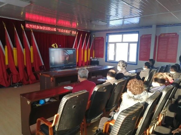 12月的黑土地早已被白雪覆盖,深冬的早晨寒意袭人。然而,佳木斯市桦川县悦来镇东兴村的村委会会议室里却是热闹非凡,20名村民早早地就来到了这里,期待着“云端参观”。“欢迎参加省法院公众开放日活动”,随着讲解员的一声问候,今天上午9时,黑龙江高院“云端开放”正式拉开帷幕。讲解员先是详细介绍了高院党建大厅展板内容,细致讲解着中国共产党的五种精神和黑龙江省四种精神。屏幕另一端的东兴村,也正是在党组织的带领下,成功摘掉了贫困的帽子,并将一项项荣誉写进了脱贫攻坚的“荣誉册”中。在物质生活得到极大改善的同时,如何让村民不断提升法治意识,让法治成为走好小康路的指路明灯,是东兴村参加本次云端开放..