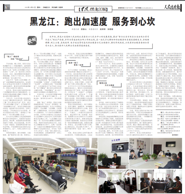 《人民法院报》报道黑龙江法院“一站式”建设:跑出加速度 服务到心坎