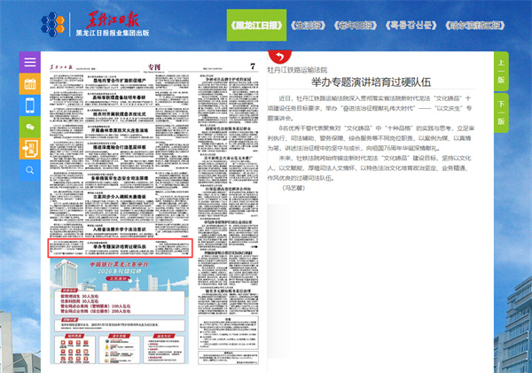 《黑龙江日报》:牡丹江铁路运输法院 举办专题演讲培育过硬队伍