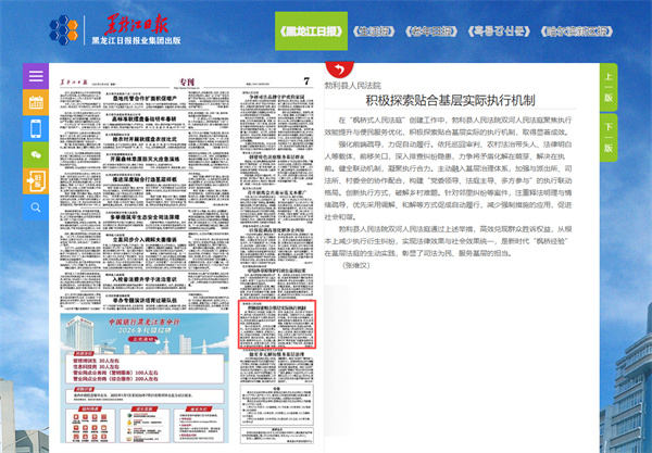 《黑龙江日报》:勃利县人民法院 积极探索贴合基层实际执行机制