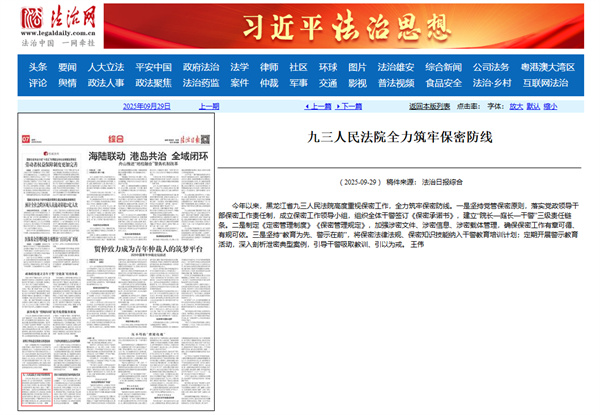 《法治日报》:九三人民法院全力筑牢保密防线