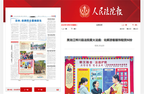 《人民法院报》:黑龙江桦川县法院星火法庭 化解游客服饰租赁纠纷