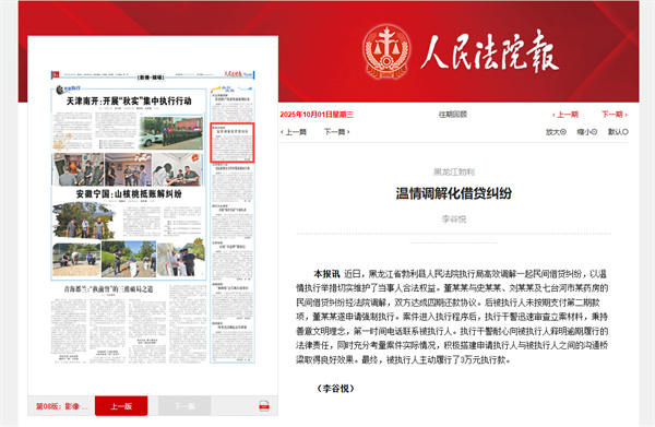 《人民法院报》:黑龙江勃利 温情调解化借贷纠纷