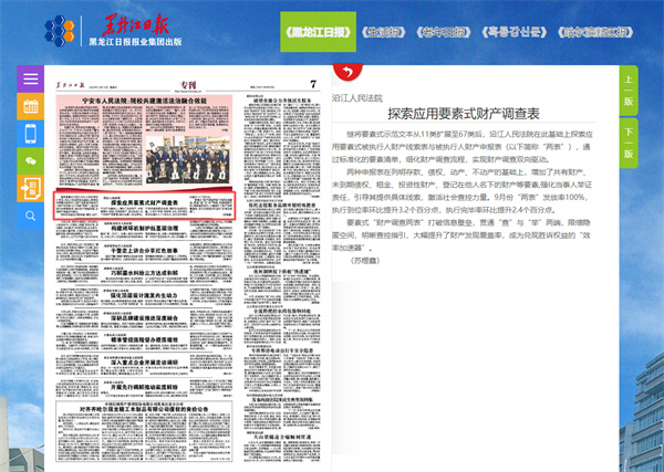 《黑龙江日报》:沿江人民法院 探索应用要素式财产调查表