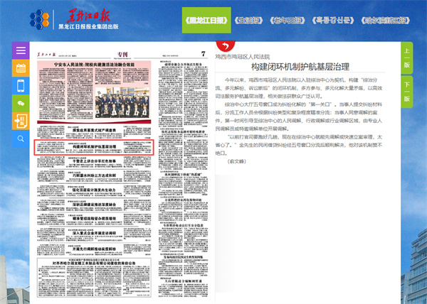 《黑龙江日报》:鸡西市鸡冠区人民法院 构建闭环机制护航基层治理