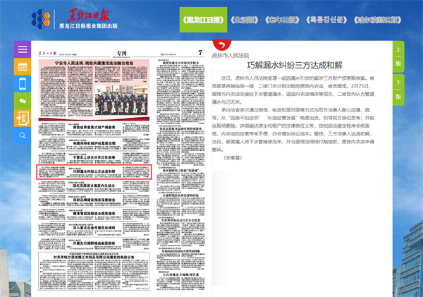 《黑龙江日报》:虎林市人民法院 巧解漏水纠纷三方达成和解