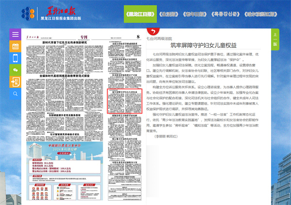 《黑龙江日报》:七台河两级法院 筑牢屏障守护妇女儿童权益
