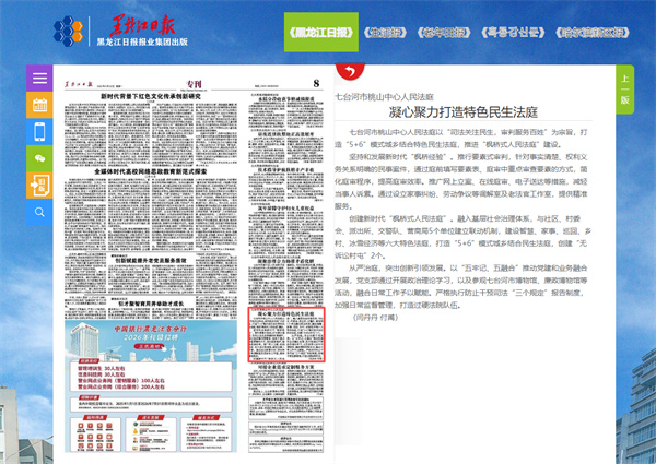 《黑龙江日报》:七台河市新兴区人民法院开发区人民法庭 凝聚治理合力助推矛盾化解