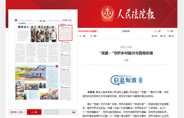 《人民法院报》:黑龙江拜泉 “党建﹢”守护乡村振兴与营商环境