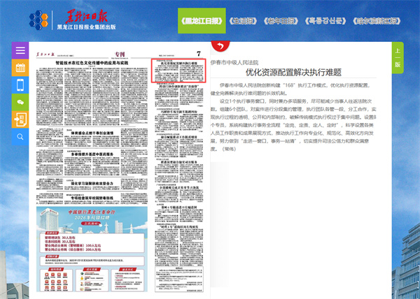 《黑龙江日报》:伊春市中级人民法院 优化资源配置解决执行难题