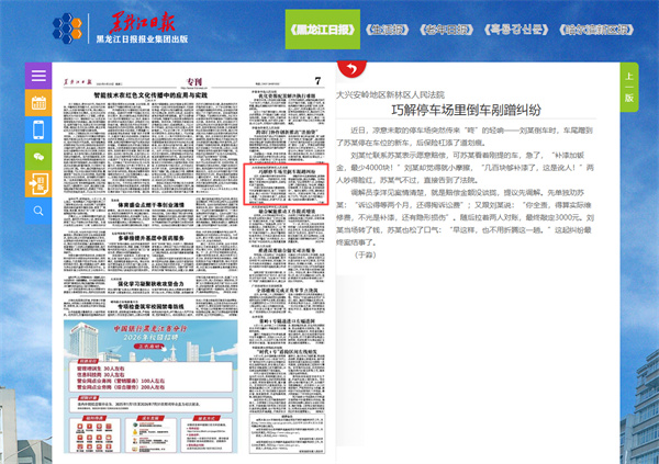 《黑龙江日报》:大兴安岭地区新林区人民法院 巧解停车场里倒车剐蹭纠纷