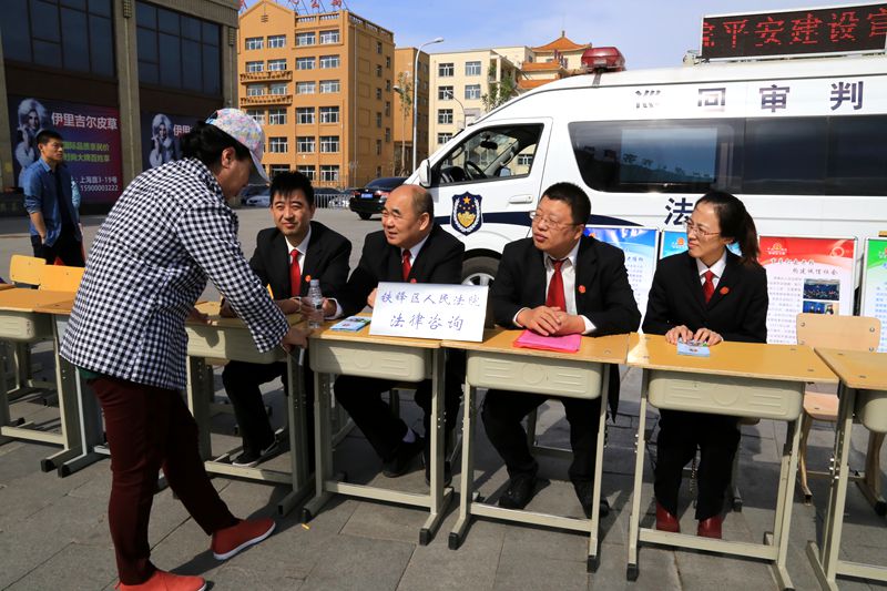 为深入开展法治宣传,教育引导广大群众知法、守法以及懂法,切实维护社会的和谐稳定,5月23日上午,铁锋区法院参加了由齐齐哈尔市铁锋区综合治理委员会组织的“平安建设”法制宣传活动。铁锋区法院的干警们带着事先编印好的法律宣传材料以及宣传图板来到齐齐哈尔市铁锋区万力皮革城中心广场,通过发放宣传图册、宣..