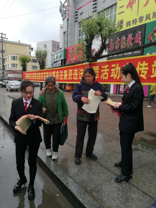 为进一步提高社会公众对非法集资犯罪的防范意识,增强人民群众对非法集资的危害性的认识,切实保护人民群众合法权益,迎春林区基层法院先后在法院网站、微信公众号、微博发布宣传案例,23日在商业街开展了打击和防范非法集资活动宣传活动,干警们冒雨来到商业街,向来往群众发放非法集资宣传资料,接受群众法律咨询。鲜红..