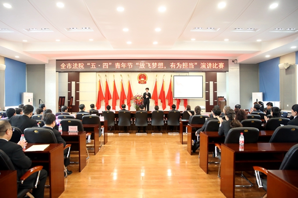 4月27日,在五四青年节到来之际,七台河市中级人民法院组织全市法院青年干警“放飞梦想,有为担当——我爱我院,我爱司法审判事业”主题演讲赛。此次活动得到了团市委和市直机关工委的大力支持,并派员担任评委。来自全市两级法院的10名青年干警用真挚的情感和激情的语言抒发了对司法审判事业的热爱,表达了对司法..