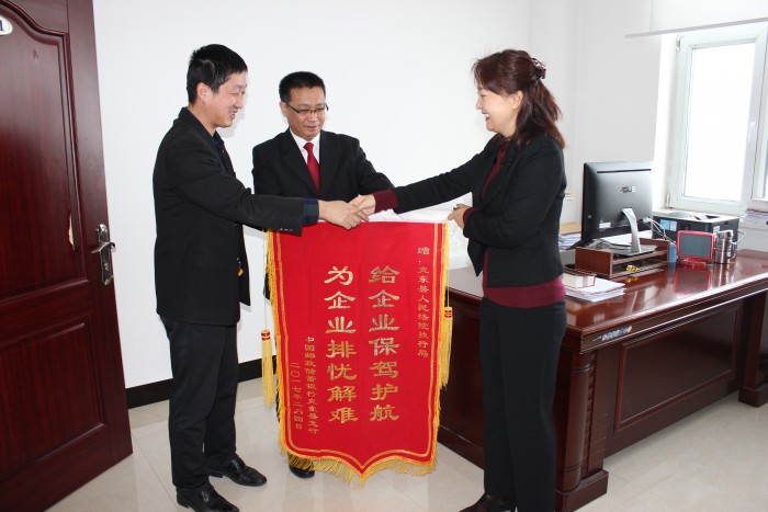 2月6日,中国邮政储蓄银行克东支行向克东县法院送来三面锦旗,对克东县法院在办案中从大局出发,依法保护金融债权、稳定金融秩序和防范化解金融风险的做法表示感谢。中国邮政储蓄银行克东支行行长和相关部门负责人专程到克东县法院赠送感谢锦旗,感谢克东县法院“伸张正义,秉公执法”“秉承公正执法,维护金融债权..