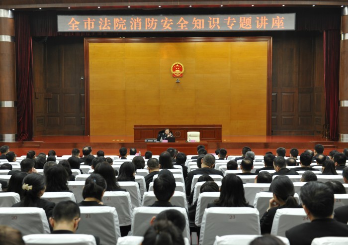 为了增强全院干警的消防意识,掌握消防安全技能,全面加强消防安全管理,1月4日下午,哈尔滨中院举办全市法院消防安全知识专题讲座,邀请消防知识宣传中心主任史钰玺对全体干警进行消防安全知识教育。市法院院领导及全体干警在市法院大法庭主会场聆听讲座。讲座中,史钰玺就消防日常检查、消防火灾预防和应急处置、..