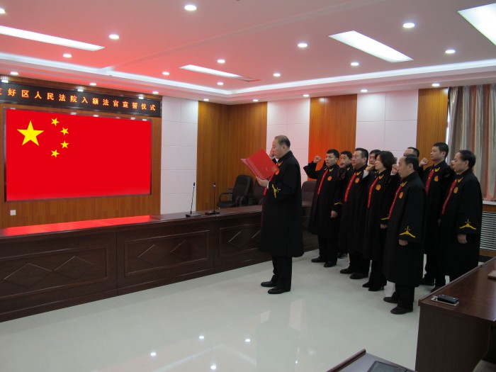 “我宣誓:忠于中华人民共和国宪法,维护宪法权威,履行法定职责……”。12月1日上午九点整,伊春市友好区人民法院12名首批入额法官在院长丛喜武的领誓下,身着神圣的法袍,面向鲜艳的五星红旗,右手握拳高举过肩,庄严宣誓。此次员额制法官的遴选,经过动员部署,考试考核,业绩测评、民主推荐等环节完成员额制改..
