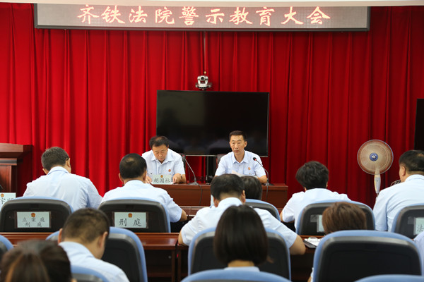 为贯彻落实好哈铁两级法院警示教育会议精神,8月5日,齐铁法院召开警示教育大会。院长胡国林就进一步加强廉政建设提出了具体要求。要求全体干警“做人要老实、说话要诚实、生活要朴实、做事要扎实”,努力成为信念坚定、执法为民、敢于担当、清正廉洁的好法官好干警。干警们纷纷表示,一定从从点点滴滴的小处..