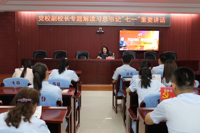 7月22日下午,铁力市法院邀请中共铁力市委党校副校长郭丽英教授对“习近平总书记七一重要讲话”进行专题辅导,全体党员干警参会。讲座结束后,全体干警参加针对讲座内容设置的集中测试。郭丽英教授从讲话主要特点、主要内容和主要亮点三个方面对习近平总书记“七一”重要讲话进行全面而深刻的解读,特别对讲话主要..