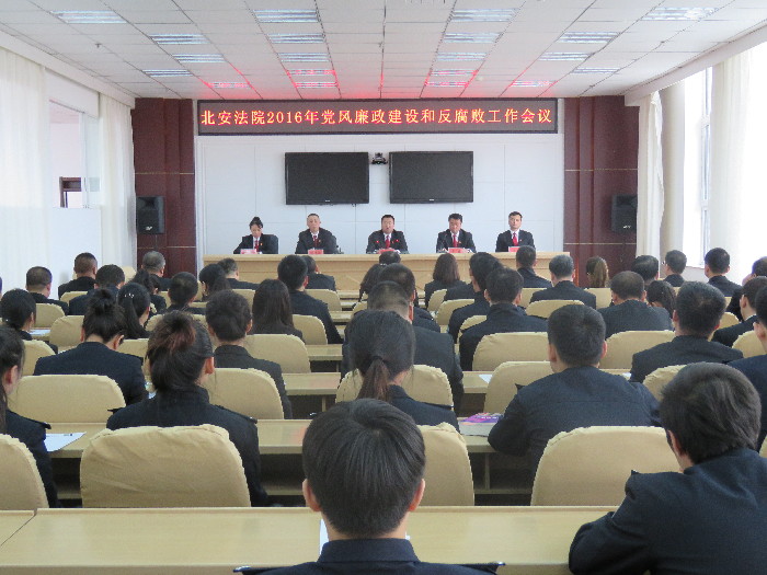 为深入贯彻落实上级法院党风廉政建设和反腐败工作会议精神,推进党风廉政建设和反腐败工作,4月19日,北安市法院召开了2016年党风廉政建设和反腐败工作会议。会议传达了上级法院党风廉政建设和反腐败工作会议精神,院长与副院长、副院长与分管部门负责人分别签订了《党风廉政建设责任书》。党组书记、院长李庆友作..