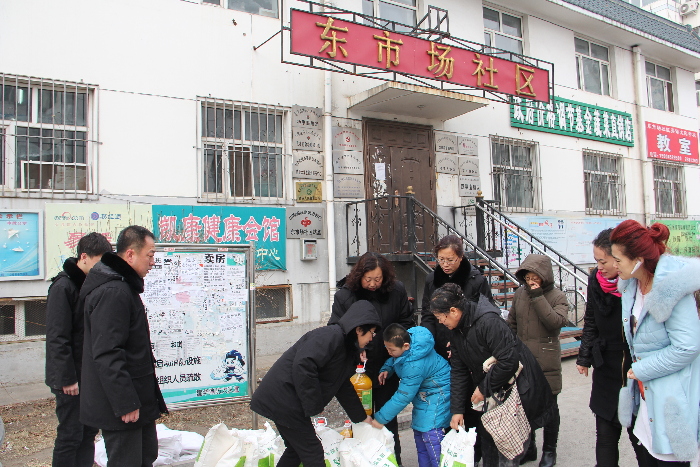 2月11日,是中国农历“小年”,意味着进入了新年的年关 ,齐齐哈尔市建华区法院党总支心系贫困群众,早晨一上班,院党总支就组织党员干警们去周边社区开展扶贫慰问活动,为附近社区的“邻居们”献上一份爱心,全体党员干警集资购买了豆油和面粉,以王玲副院长和李洪海副院长为首的党员干警代表,分成2组先后来到东市场社..